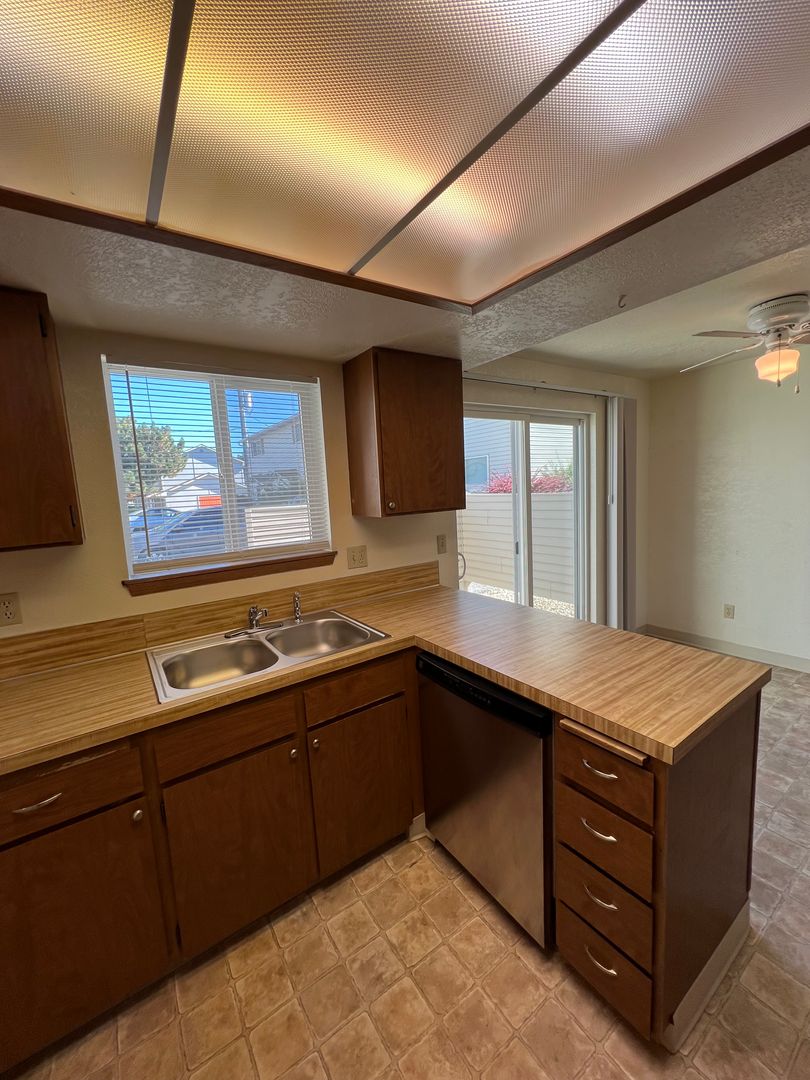 $1295.00...plus $45.00 for Water Sewage and Trash. Two Bedroom, 1.5 Bath, End Unit, Big Windows for lots of natural light! Storage Galore! Semi-Private Patio. Full size washer dryer hook ups available in kitchen.